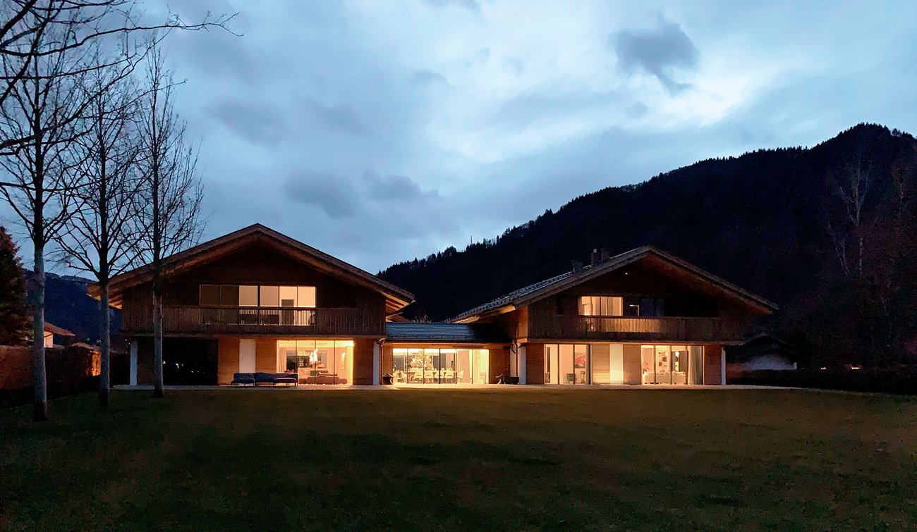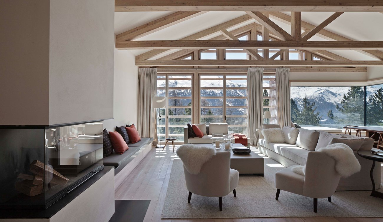 A chalet designed to to blend in with its mountain surroundings, using materials that reflect the local environment. The architecture, interiors, and landscape are carefully coordinated to create a cohesive atmosphere. Wood is the dominant material, chosen for its organic qualities, warmth, and texture. Its natural grain and irregularities contribute to a sense of comfort and authenticity throughout the space, reflecting the soul of the location.