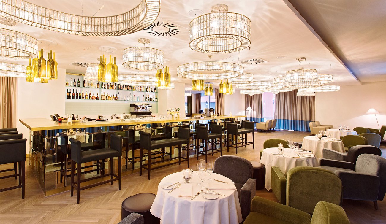 A lush green oasis in the atrium-style lobby invites guests to unwind and connect. This vibrant interior design concept for a Congress Hotel in Germany is designed to foster socialising and networking, bringing new energy to the conferencing experience.