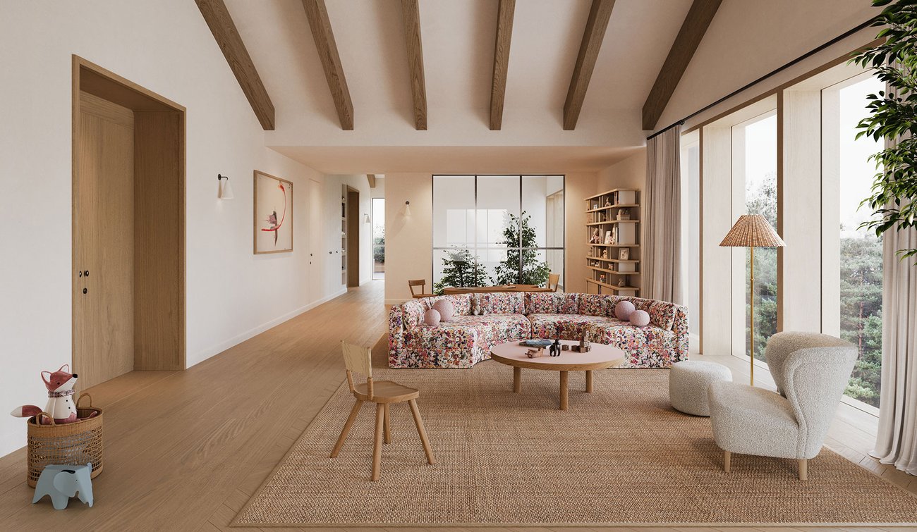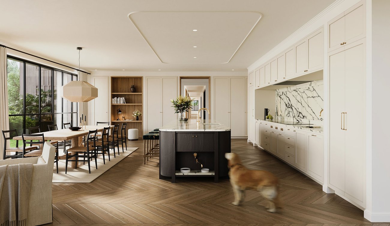 Designed as a cluster of four interconnected “sub-villas,” the project revisits the idea of a single-family home with a contemporary compound where multiple generations can live comfortably under one roof.