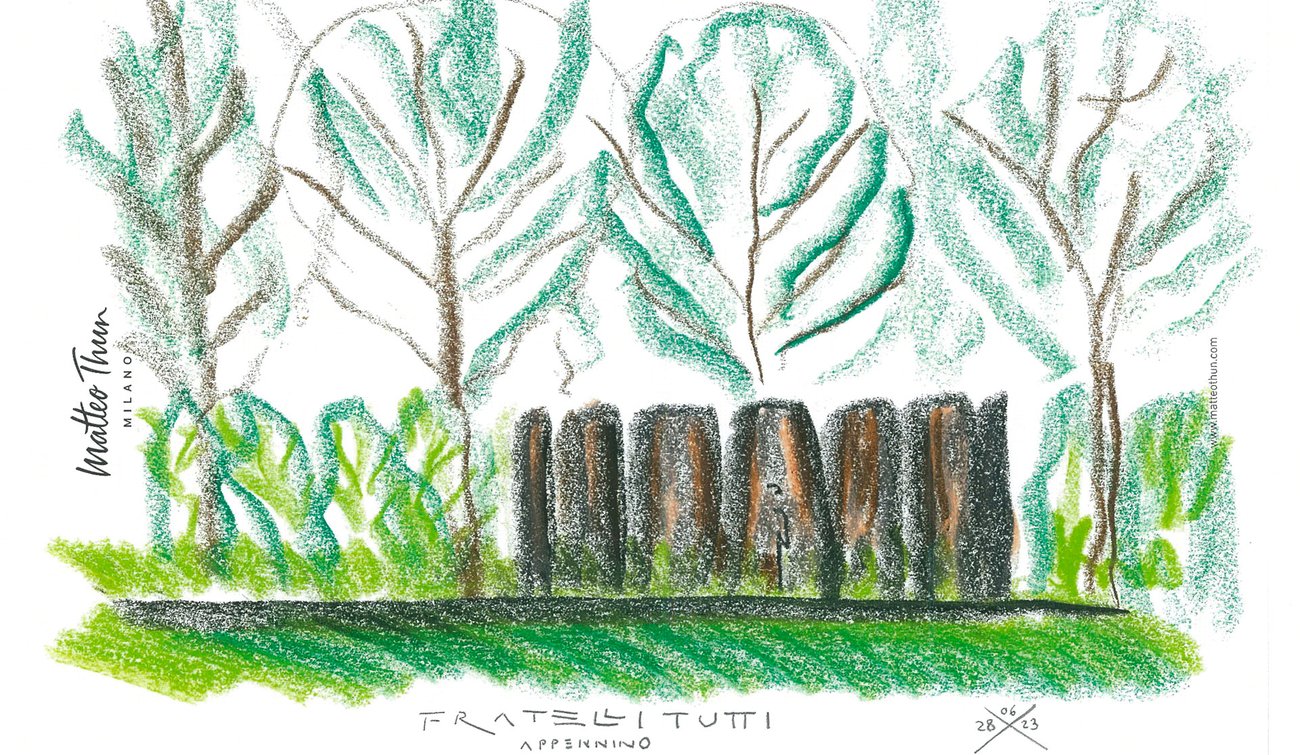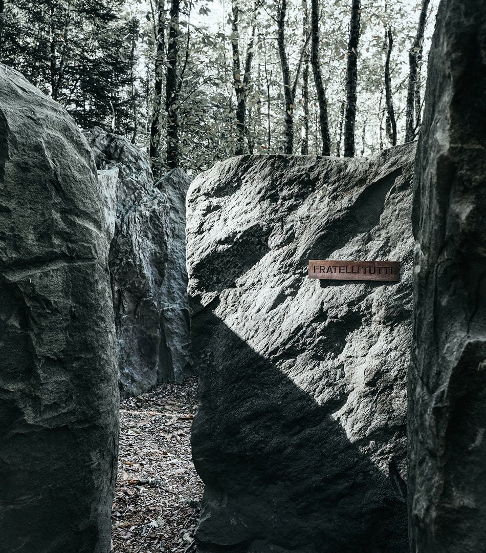 Inspired by Jorge Bergoglio and his encyclical Fratelli Tutti, the installation pays homage to the universal values of fraternity and peace shared by religions around the world. A composition of monoliths of local stone found on the very site where it stands, in the Italian Alps, the installation draws meaning from its circular form and from the material itself. By repurposing stone born over millennia from the powerful cycles of the Earth, the work honours its ancient origins, speaks of transformation and renewal, and reminds us that unity takes time. In all its circular simplicity, the installation evokes the natural cycles of life, encourages human dialogue, and offers a vision where fraternity is the path to a conscious shared destiny.